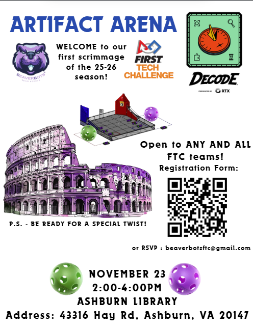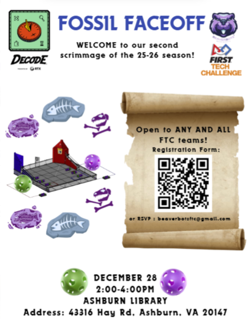 Our first scrimmage of the 25-26 DECODE season. With over 150+ participants and 7 teams, we hosted a simulated DECODE qualifier with 8+ games. Teams from across Northern Virginia came to our local library to play, network, and develop their competition skills for their upcoming qualifiers.