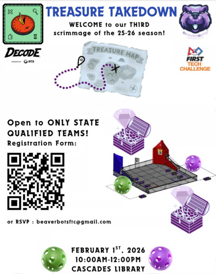 The BeaverBots did a solo hosting of their second Into the Deep FTC scrimmage. On January 4, 2025, there were seven teams and over 80+ attendees. With a new audio and speaker system set up, the scrimmage was a hit!